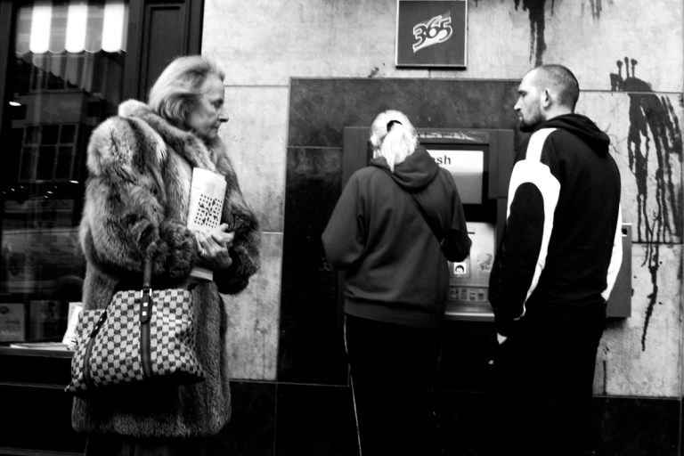 St Patrick’s Street, Cork, around 2008/09 – The economy was unraveling. I saw this meeting happening as walked along from behind the young couple. A few years later I learnt the woman with the crossword was the mother of a friend. The mother had passed away not long after this was taken. This was to be the last photograph of her.