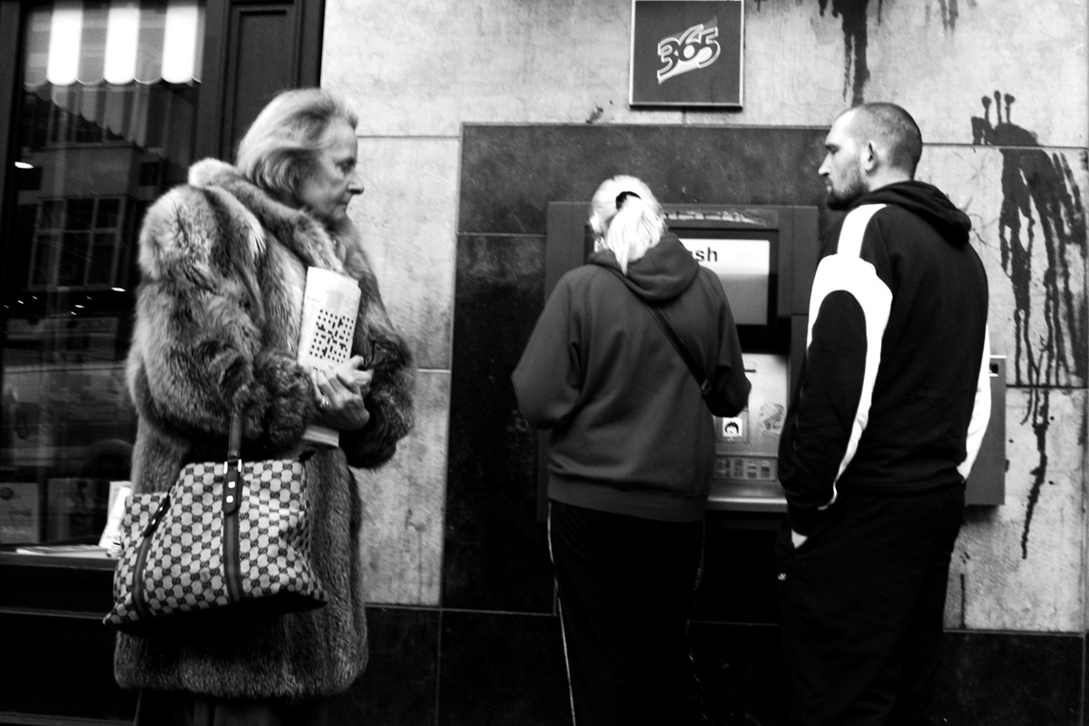 St Patrick’s Street, Cork, around 2008/09 – The economy was unraveling. I saw this meeting happening as walked along from behind the young couple. A few years later I learnt the woman with the crossword was the mother of a friend. The mother had passed away not long after this was taken. This was to be the last photograph of her.