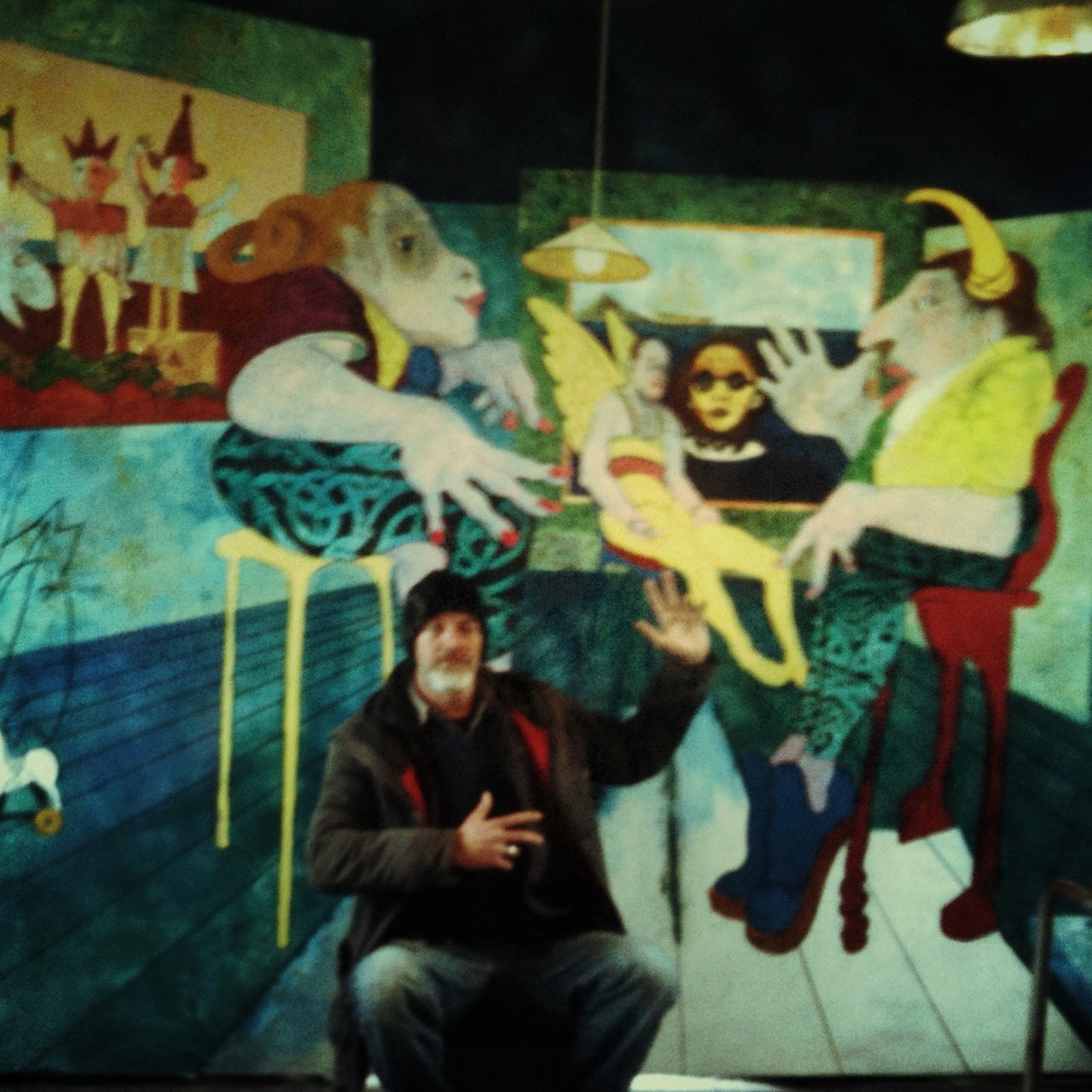 The other day I got to sit before a colossal scenario in progress before it will eventually head off to Peru :: ‘Beautiful Red Shoes’ by Pat Connor