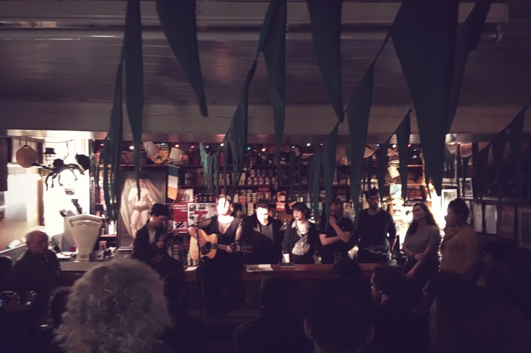 I had only just finished dinner with visiting family, the last supper, when I caught a tweet from Emma Langford this gig was still going on down at Levis’.