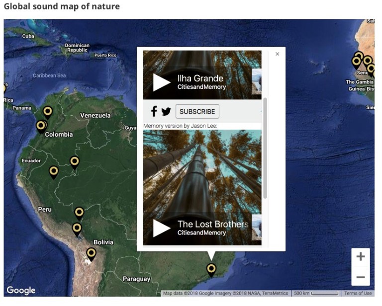 In collaboration with Tilla Martin I recorded a soundscape for this Cities & Memory project ‘Sounding Nature‘ featuring 250 artists and 55 countries.