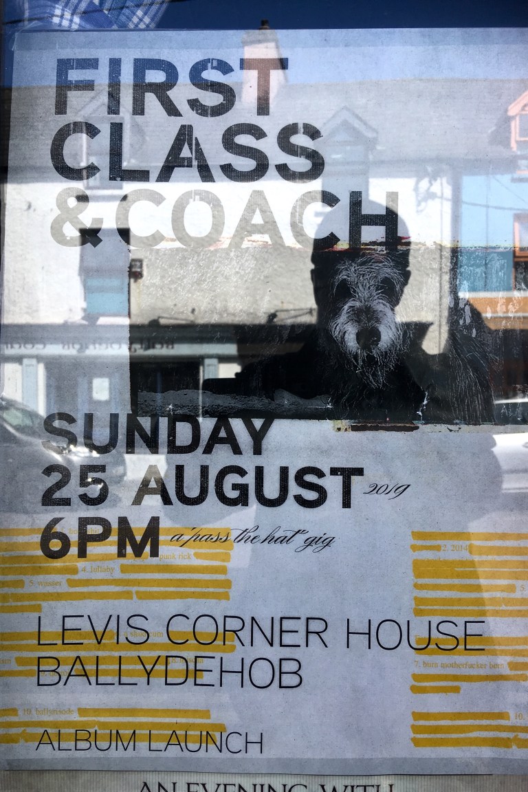 Nearly two years on from their first gig First Class & Coach (F.C.&.C.) release their debut album ‘The Truth About Honey‘ with the launch at Levis Corner House, Ballydehob, 25 August 2019. Gerry, Ruben, Jonathan, Andrew, Colm, Marcus with Billy on sound & Lia on BBQ.